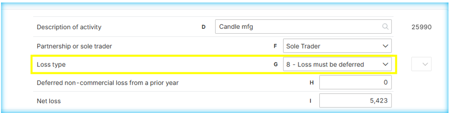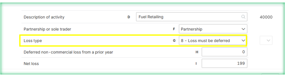 NOTE: Ensure to select "8 - Loss must be deferred" as the "Loss Type" inside each Business loss activity details for each loss amount that you are deferring. Below is the sample image:
