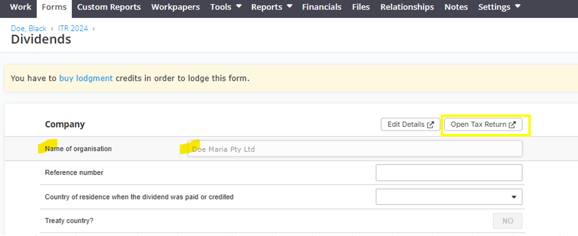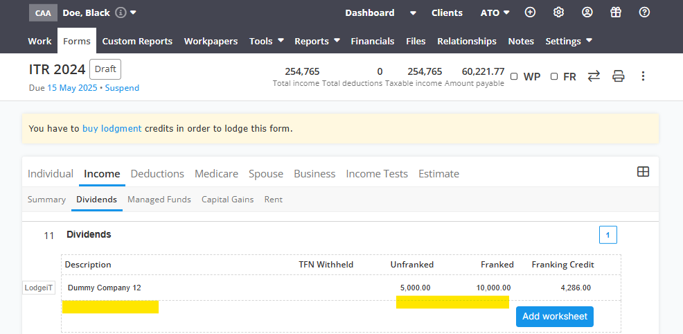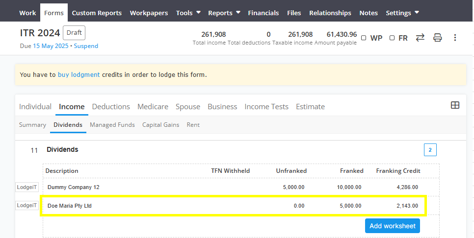 Per below ITR form, you can see that the Dividends Paid by Doe Maria Pty Ltd is already gone.
