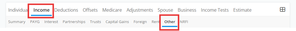 Error:Please try navigate via Income > Other:Scroll through the "Other Income Category 4", and provide the amount needed, Then press "Validate" button.