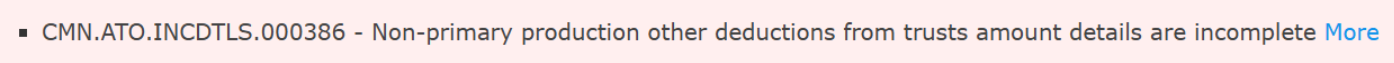 "Non primary production other deductions from trust amounts details are incomplete."