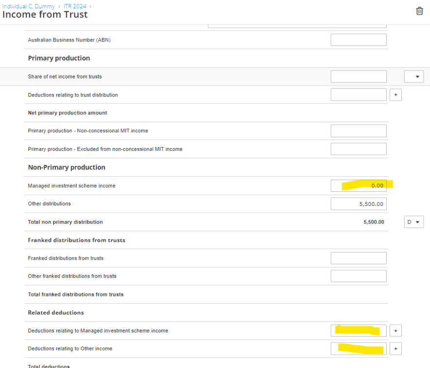 Solution 1. Please delete the zero figure in the Related Deductions section of the Trust Schedule, if there is no deduction amount for input.