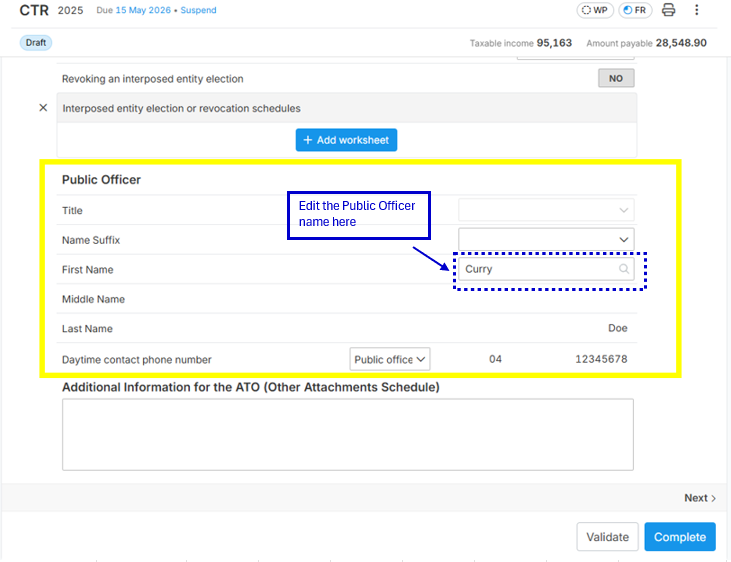 Where to input the Public Officer?