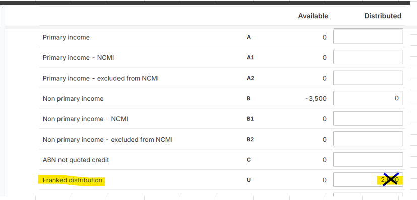 Error Prompt: CMN.ATO.TRT.433098 - Franking distributions is incorrectly distributed.
